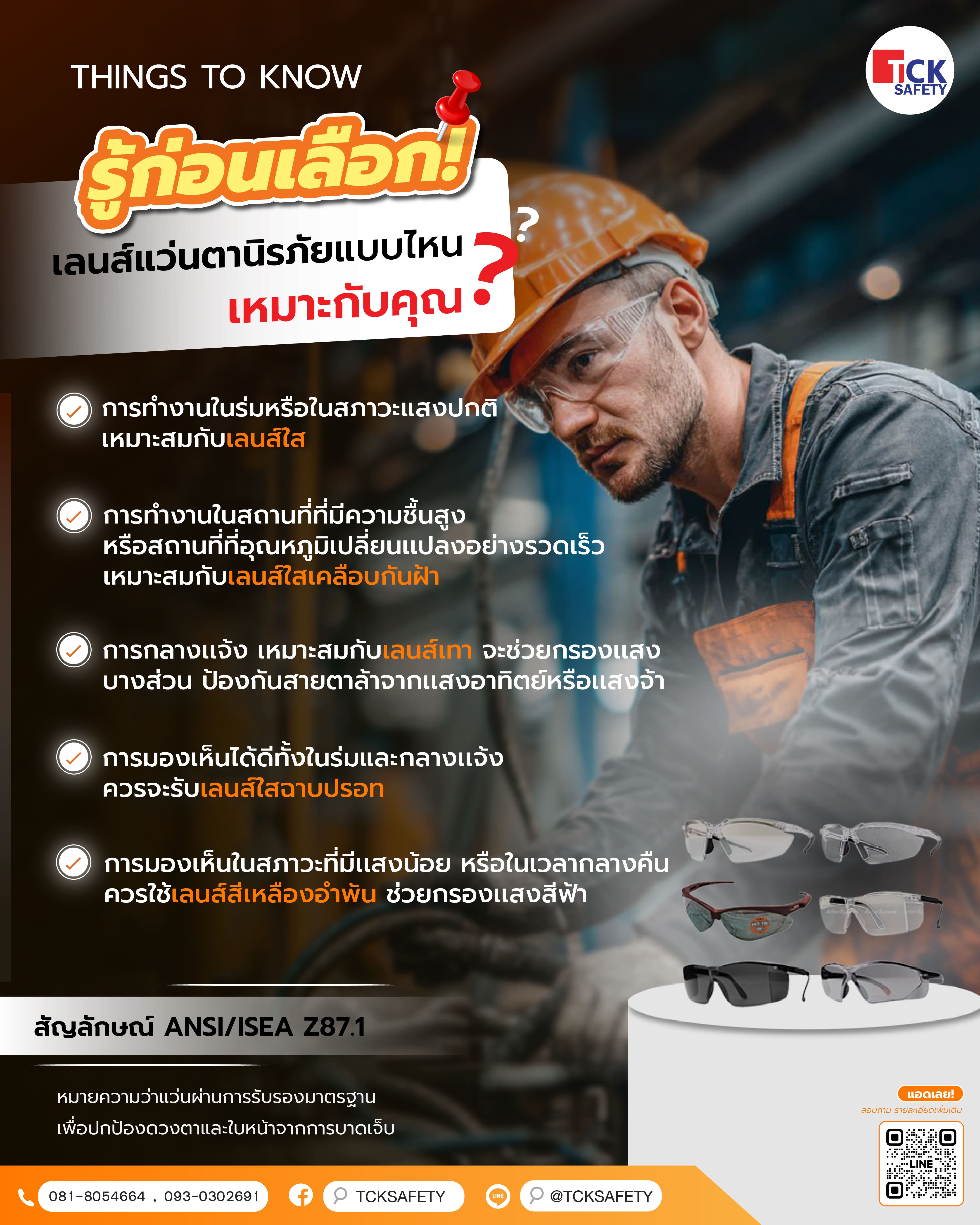 การป้องกันตาไม่ได้มีแค่กรอบแข็งแรง แต่ “เลนส์ที่เหมาะกับสภาพแสงและงานของคุณ” จะช่วยให้มองเห็นชัด ลดแสงรบกวน และทำงานได้สบายตาตลอดวัน